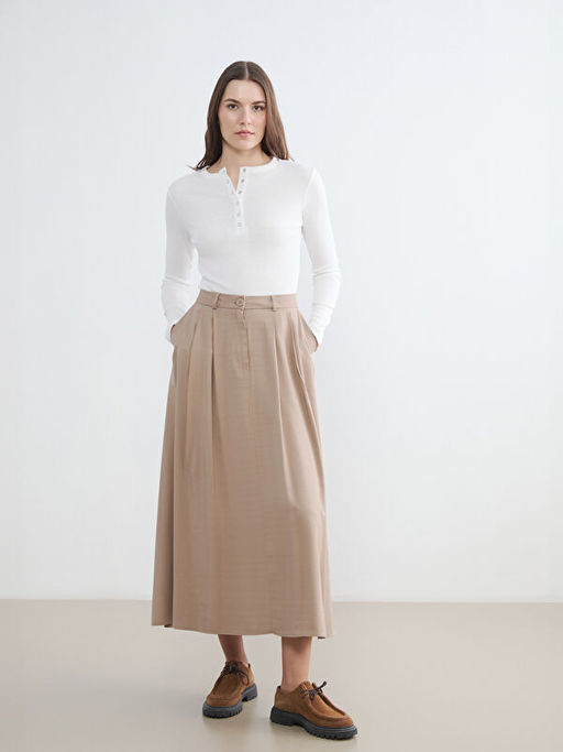 Y?ksek Bel Pileli Etek