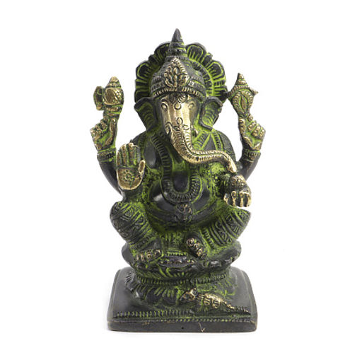 Эта выразительная бронзовая фигурка изображает Ганешу одного из самых любимых и почитаемых божеств индуизма, известного как Устранитель препятствий и покровитель новых начинаний. Статуэтка выполнена из темной бронзы с эффектом искусственного старения, что придаёт ей благородную патину, глубину и ауру древней мудрости.