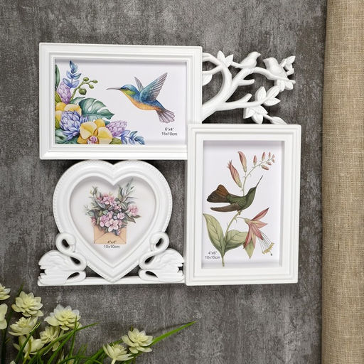 Фоторамка - коллаж на 3 фото 10?10 см, 10?15 см Фламинго и птички, пластик, белая, 25.5?28 см