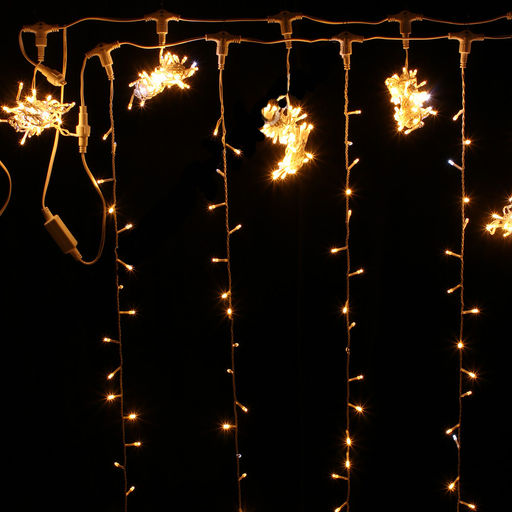 • Занавес светодиодный уличный с контроллером IP44 300 л. 2*1,5 м белый провод тёпло-белый