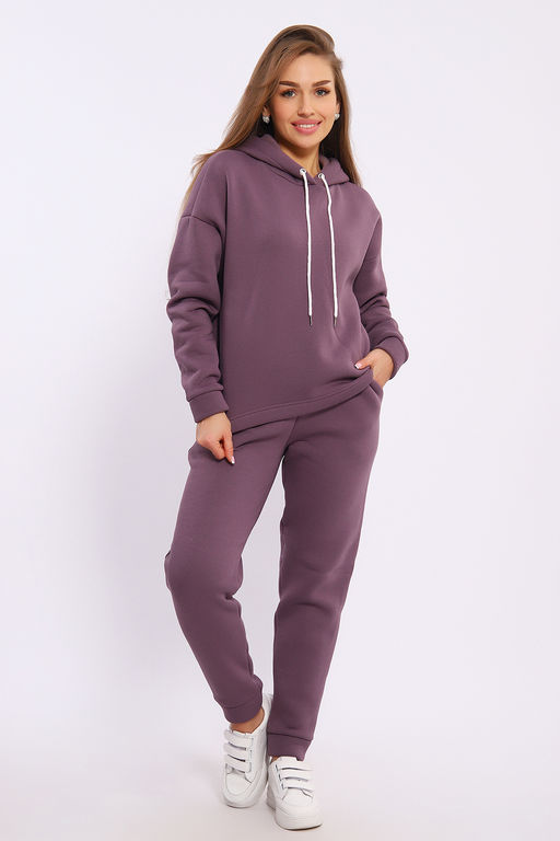 Женский модный костюм выполнен из футера 3-х нитки с начёсом - это самый толстый, плотный и тёплый вид трикотажа в своей группе. Данный вид футера имеет множество достоинств: натуральный состав, теплорегуляция, гипоаллергенность, прочность, формоустойчивость (при правильном уходе и стирке 30 - 40 °С). Костюм состоит из толстовки и брюк. Толстовка с капюшоном и шнурком. Линия плеча спущена, длинный рукав. По низу толстовки имеется резинка с фиксатором, с помощью которой Вы можете собрать изделие как вам хочется и нравится. Брюки представлены с вместительными боковыми карманами. Манжеты брюк выполнены из основного материала, а пояс на специализированной поясной машине, что делает швы ровными и качественными. Свободный крой прекрасно будет смотреться на дамах с любыми формами. Костюм такого плана представлен в широкой размерной сетке, что позволяет выбрать его как девушке, так и женщине. Однотонный костюм модных расцветок будет удачным выбором для поездок в отпуск, на пикник, для школы, для активного отдыха и прогулок по городу. Будет гармонично сочетаться как с кроссовками, так и с ботинками. Используя эту модель в качестве домашнего костюма, Вы поймёте, что это именно тот самый идеальный вариант, в котором будете себя чувствовать удобно, комфортно и современно. Костюм с брюками - это настоящая находка для тех, кто ценит свою индивидуальность!
