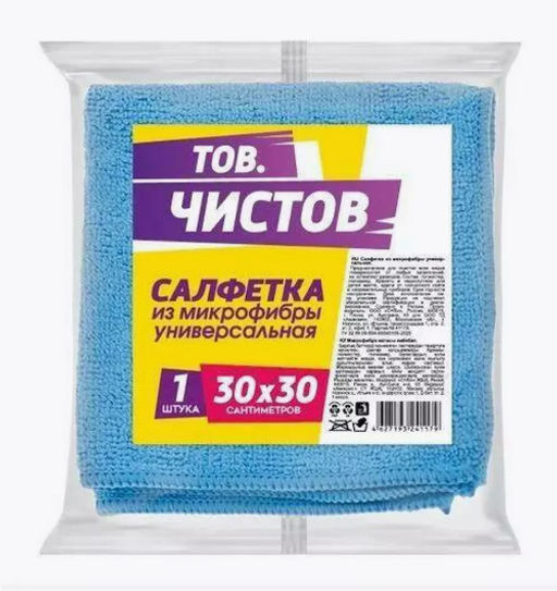 Салфетка универсальная 30х30см, микрофибра Тов.Чистов. Салфетки для уборки Тов. Чистов подходят для сухой и влажной уборки помещений. Эффективно справляются с различными загрязнениями, хорошо впитывают влагу и бережно полируют поверхность.