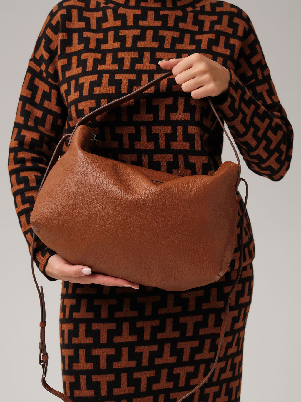 Кожаная женская сумка хобо Deboro 30963 коричневый фундук.