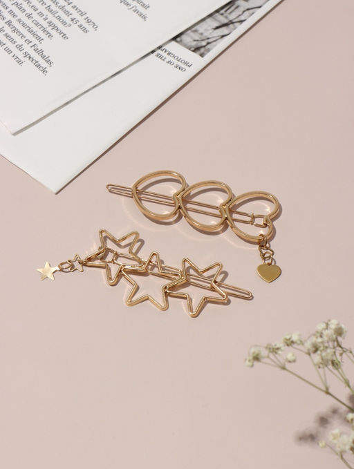 Цена за 3 шт. Невидимка для волос "Джастин" (набор 2 шт) 7 см, золото