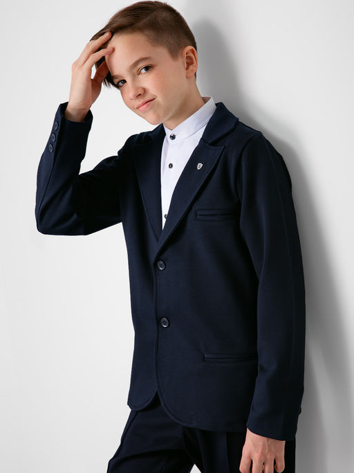 Пиджак для мальчика Соль&Перец однобортный из плотного трикотажа. Модель идеально сочетается с брюками любого фасона и подойдет как для школы, так и для торжественного мероприятия.
