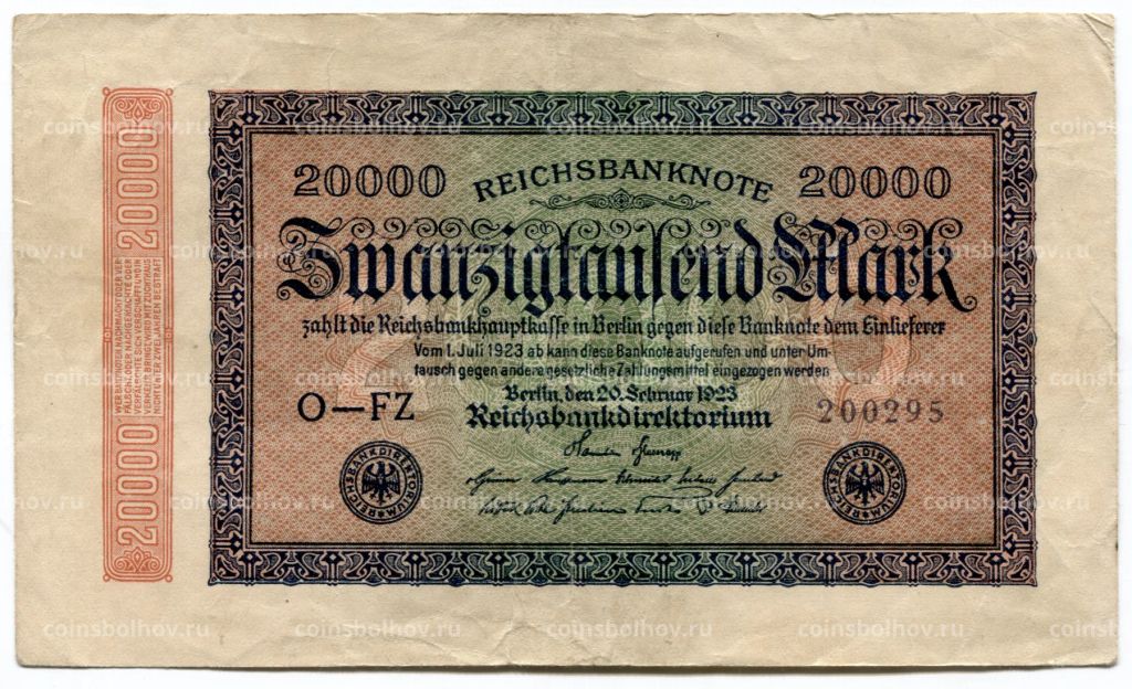 • Банкнота 20000 марок 1923 года Германия