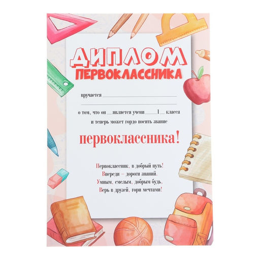 • Диплом «Первоклассника!», бумага, А4, 20 штук
