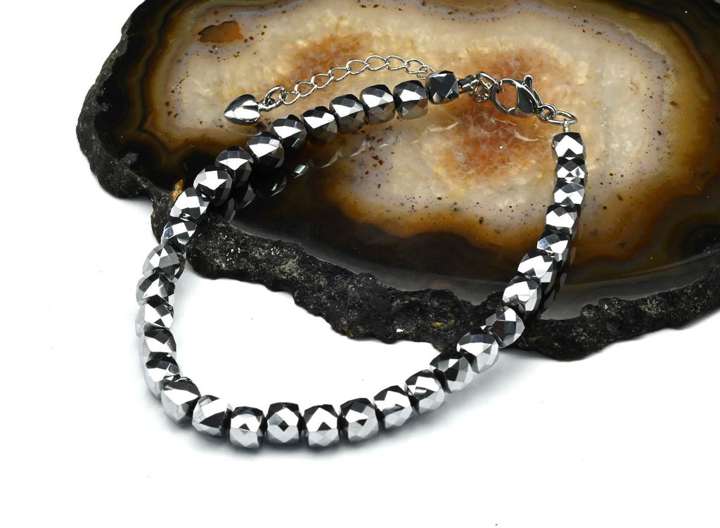 Браслет из циркона кубик 5мм цв.серебристый, 18см
