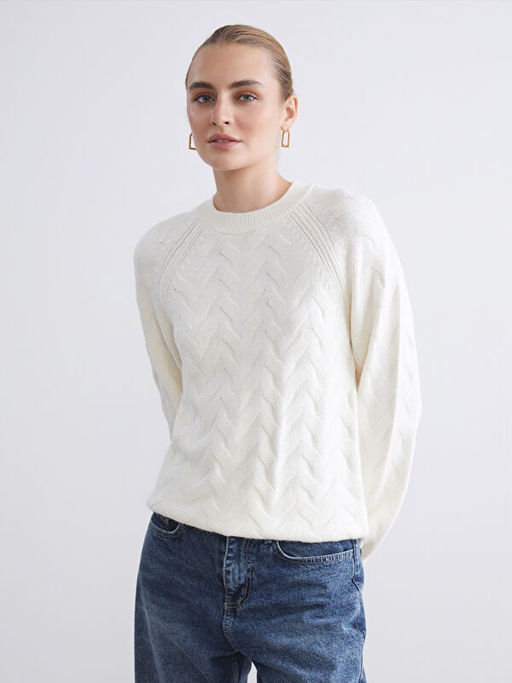 • Bisiklet Yaka Kendinden Desenli Kad?n Triko Kazak
