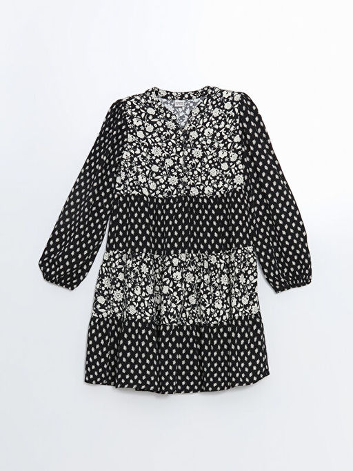 Bisiklet Yaka ?i?ekli K?z ?ocuk Elbise