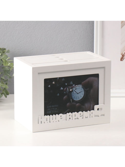 • Фотоархив на 96 фото 10×15 см с фоторамкой 10×15 см «Наше время», белый, 20×15×12 см