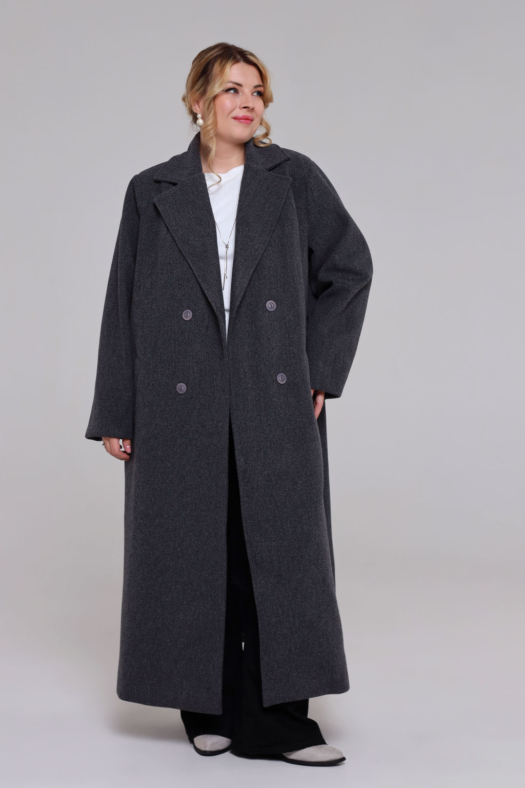 Пальто с втачным рукавом серое­
