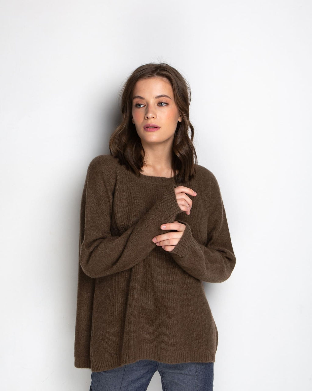 Теплый женский джемпер из пуха яка в коричневом цвете сочетает в себе натуральность и функциональность. Материал 100% пух яка обладает уникальными терморегулирующими свойствами: эффективно защищает от прохлады и предотвращает перегрев в теплых помещениях благодаря гигроскопичности и воздухопроницаемости.