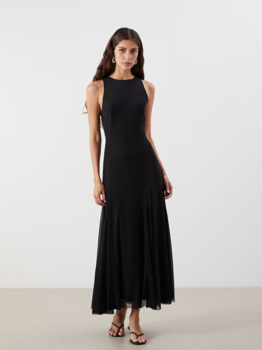 • Bisiklet Yaka Pileli Elbise