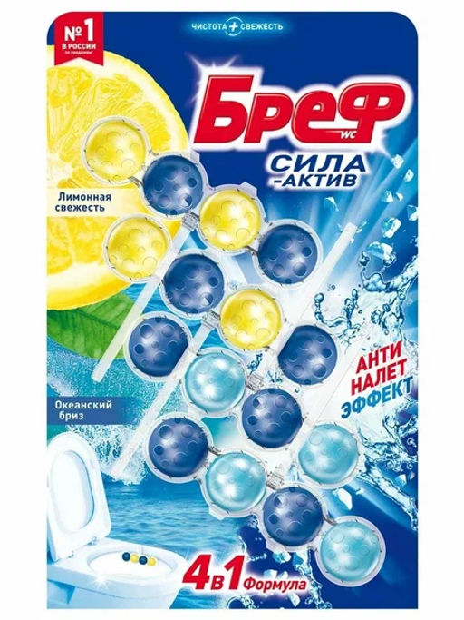 • БРЕФ чист.блок д/унитаза 4х50гр СИЛА-АКТИВ Лимон-Океан