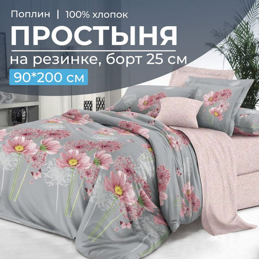 Артикул: Простыня на резинке 090*200 см, поплин, борт 25 см (Амадора (компаньон))
