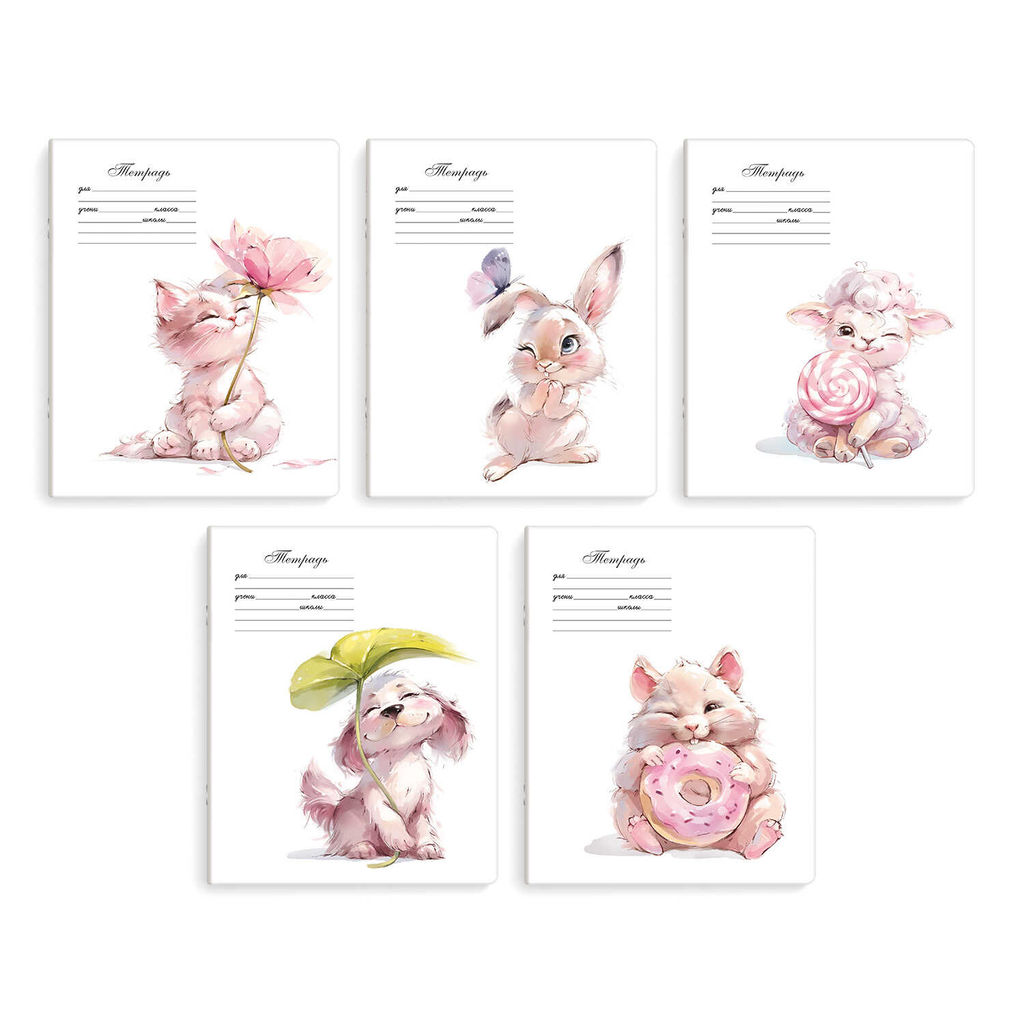 Тетрадь школьная ученическая, 12 л, клетка, арт. 70895/ 10 АКВАРЕЛЬНЫЕ ЗВЕРУШКИ /А5+, мягкий переплёт (2 скобы), обложка - выборочный УФ-лак, мелованный картон 190 г/м?, упаковка ассорти/