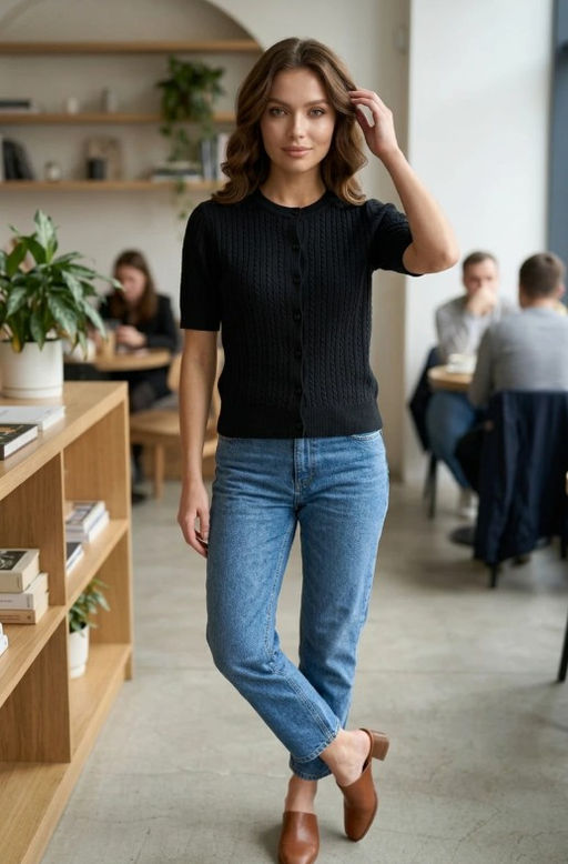 K13613 Футболка (вязаный трикотаж) ЧЕРНЫЙ