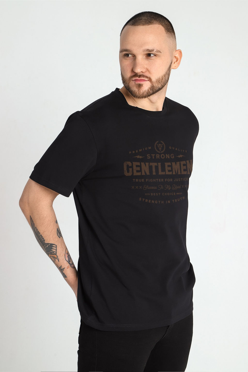 Футболка мужская из гладкокрашеного трикотажного полотна "кулирка" с лайкрой, классическогоь покроя, с коротким втачными рукавами, горловиной овальной формы, обработанной втачной планкой и принтом на полочке, выполненным в технике шелкографии.­