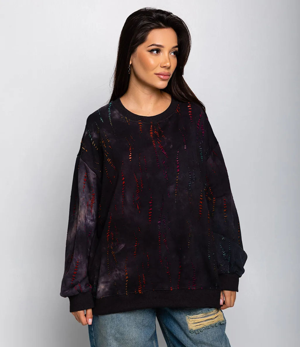 Свитшот это одежда, которая выделяет привлекательность каждой представительницы прекрасного пола. Модный свитшот с цветными вставками станет классным дополнением к вашему повседневному образу. Его предпочитают покупательницы, которые ценят сочетание качества и стоимости. Фасон подчеркивает изящность фигуры. Производитель знает, как найти стильные и уникальные решения. Для пошива использована ткань 80% хлопок и 20% полиэстер, которая характеризуется безупречным качеством. Даже после множества стирок изделие не утратит первоначальной индивидуальности. Вы сможете носить его с радостью. Обратите внимание на цвет. Он является насыщенным и полностью соответствует фотографии на сайте. Чтобы вы были уверены в размере, мы представили на странице таблицу. Воспользовавшись ею, вы сможете сами обмерить себя и удостовериться. Установленная нами цена является приемлемой. Не откажите себе в удовольствии быть элегантной! Рост модели 170 см, 86-68-95.­