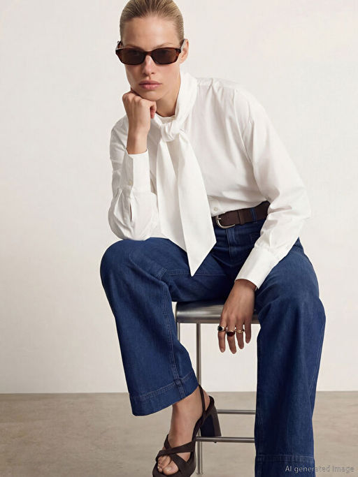 Ba?lamal? Fular Yaka Poplin Kad?n G?mlek