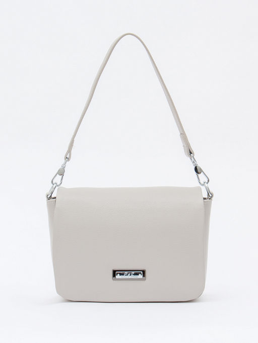 Сумка кросс-боди, выполнена из натуральной кожи. Дополнена серебристой фурнитурой. Данная модель закрывается на клапан. Каркас полужесткий. Носится в руке за съемную ручку или через плечо. В комплекте имеется съемный ремень с регулировкой длины.