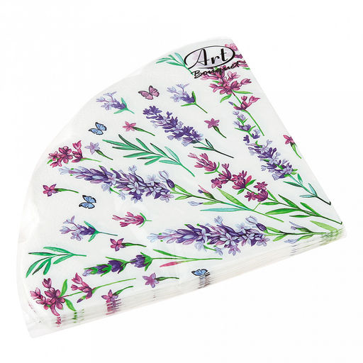 • Салфетки бумажные "Art Bouquet Rondo" д32см, 3-х слойные, 12 штук в упаковке, 100% целлюлоза, "Лаванда" (Россия)