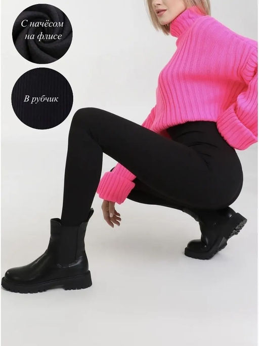 • K10823 Легинсы в рубчик (утеплитель ФЛИС) ЧЕРНЫЙ