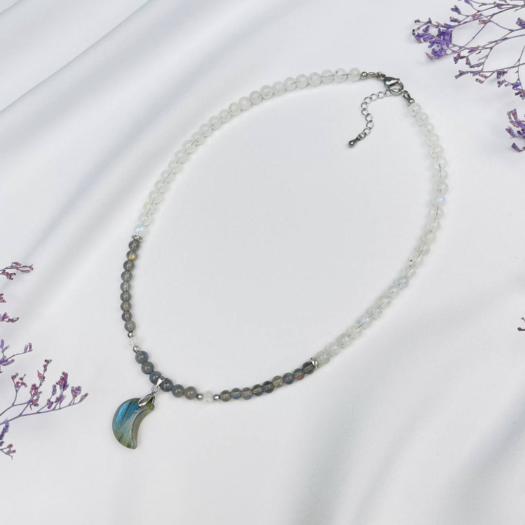 • Бусы из Лунного камня и Лабрадора с кулоном 45 см +