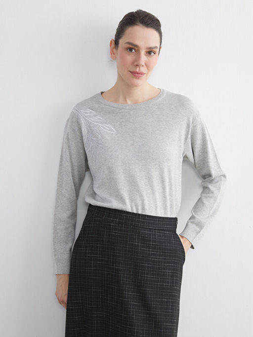 Bisiklet Yaka Ta?l? Kad?n Triko Kazak