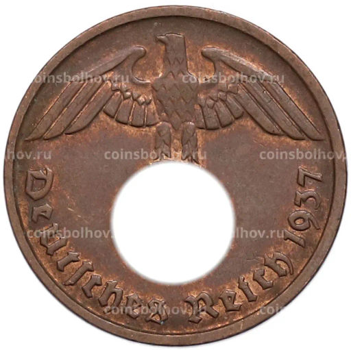 Монета 2 рейхспфеннига 1937 года D Германия