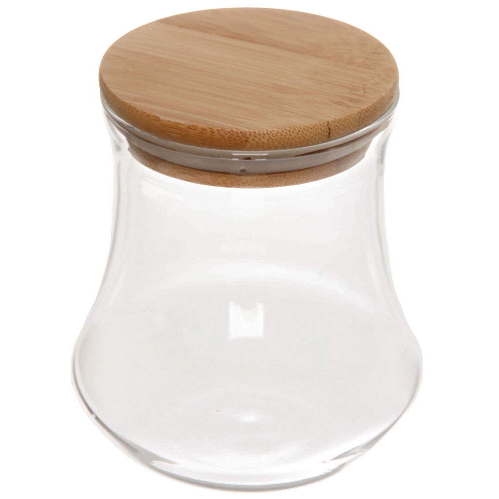 • Банка для продуктов стеклянная 500мл "Хай-Тек" с бамбуковой крышкой, груша