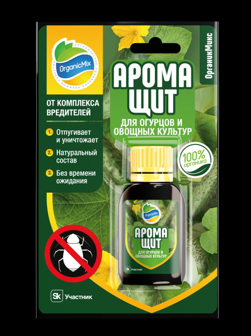 Аромащит для огурцов и овощных культур - это органическое средство защиты растений для профилактики и борьбы с насекомыми-вредителями.. - Контролирует и отпугивает насекомых-вредителей на протяжении длительного времени и обеспечивает защиту растений - Уникальная комбинация натуральных ингредиентов убивает насекомых-вредителей - Натуральный состав из компонентов высшего качества на основе эфирных масел растений без синтетических ингредиентов - Можно использовать на съедобных культурах до дня сбора урожая - Безопасен для человека и животных Аромащит это препарат на основе натуральных эфирных масел растений. Эфирные масла представляют собой вторичные метаболиты, синтезируемые растениями, физиологически важные для таких функций, как передача сигналов, привлечение опылителей, аллелопатия, адаптация к абиотическим стрессам, защита от патогенов и фитопатогенных насекомых. Состав препарата Аромащит это композиция эфирных масел, разработанная для синергетического выполнения различных функций и задач, а имен