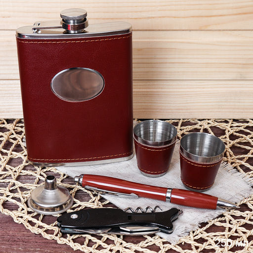 • Набор подарочный 6 в 1 / FL-130 /уп 60/ фляжка 250 мл, 2 стопки, ручка, открывалка, воронка
