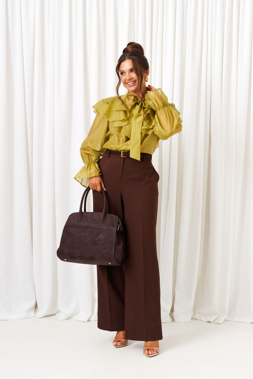 Симфония роскоши и фактур! Сочетание экстравагантной блузы и широких брюк создает гармоничный силуэт, подчеркивая неповторимость образа.