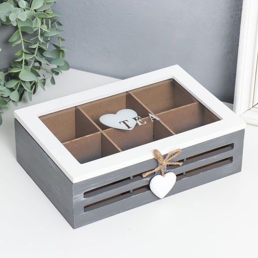 Эта деревянная шкатулка с отделениями место, где царит порядок и живут чайные пакетики. Её лаконичный дизайн с нежными сердечками и надписями создаёт атмосферу тепла и заботы о себе. Прочное стеклянное покрытие надёжно защищает содержимое, сохраняя безупречный вид шкатулки на долгие годы.