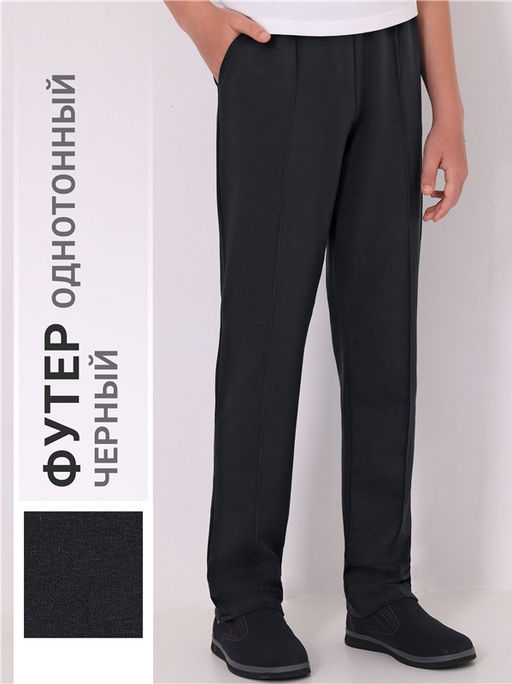 брюки,хлопок 95% + лайкра 5%,футер / хлопок 95% + лайкра 5%,черный / - / - / - / - / -,Брюки для мальчика выполнены из футера - плотного хлопкового полотна с лайкрой. Изделие на эластичном поясе, имеет удобные карманы и декоративные отстрочки-стрелки. Отличный вариант для школы! Уход: только машинная стирка (руками не стирать!) при температуре 40 градусов, без предварительного замачивания. Ассортимент осенне-зимнего периода.