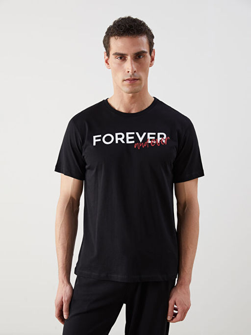 • Bisiklet Yaka K?sa Kollu Bask?l? Penye Erkek Ti??rt