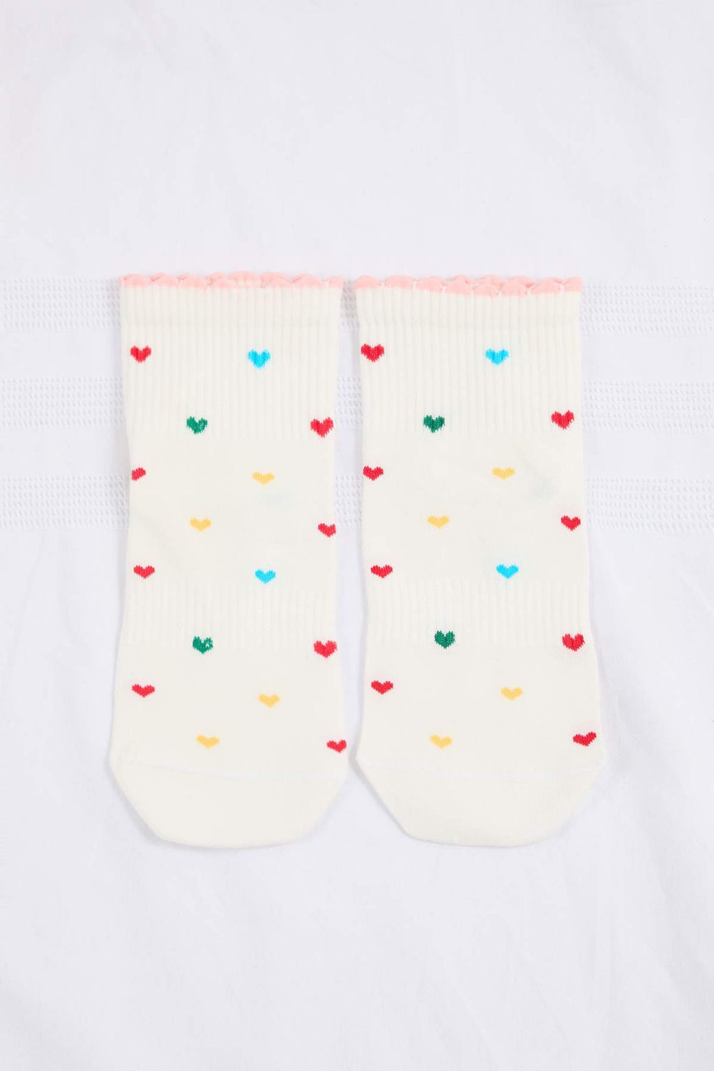 • Ekru-Cok Renkli Kalpli Jakar Orme Corap THMSS26CO00002