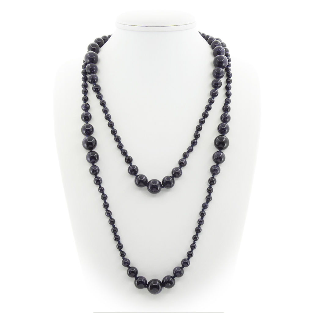 Яркие и гармоничные бусы из искусственного синего авантюрина длиной 150см. В этих бусах удачно подобраны бусинки разных размеров от 6 до 14мм.