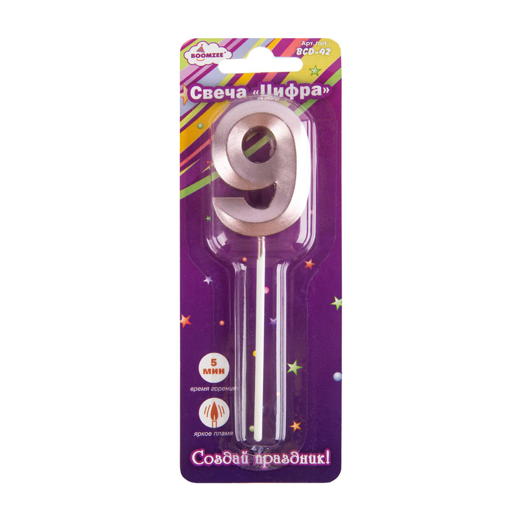 Свеча для торта "Цифра" ТМ "BOOMZEE" арт. BCD-42 . Декоративная свеча для торта "Цифра" отлично подойдёт для украшения праздничного торта или другого десерта для Дня Рождения, юбилея или Нового Года. Такие свечи озарят любой Ваш праздник мягким свечением, а желания, загаданные под их волшебный свет, обязательно исполнятся! Преимущества наших свечей: Отличное качество воска Стандартное время горения: 5 минут Оптимальная толщина свечи, что делает ее менее хрупкой. -- Характеристики -- Мин. кол-во для заказа: 12 Кратность: 12 Артикул: BCD-42 Вес единицы продажи (кг): 0.162 Вес отгрузочной упаковки, г: 162 Вес, г: 7.5 Время горения, часов: 0.12 Высота, см: 5 Габариты отгрузочной упаковки, см: 17.4*14.3*6.3 Количество: 12 Количество в пачке: 1 Количество в транспортной упаковке: 24 Максимальная температура хранения: 35 Марка: "BOOMZEE" Минимальная температура перевозки: 0 Объем единицы продажи, л: 1.57 Тип товара: Свеча Тип упаковки: в блистере Толщина: 0.7 см Форма: цифра Ширина, см: 3.5 Праздник: День Рождения