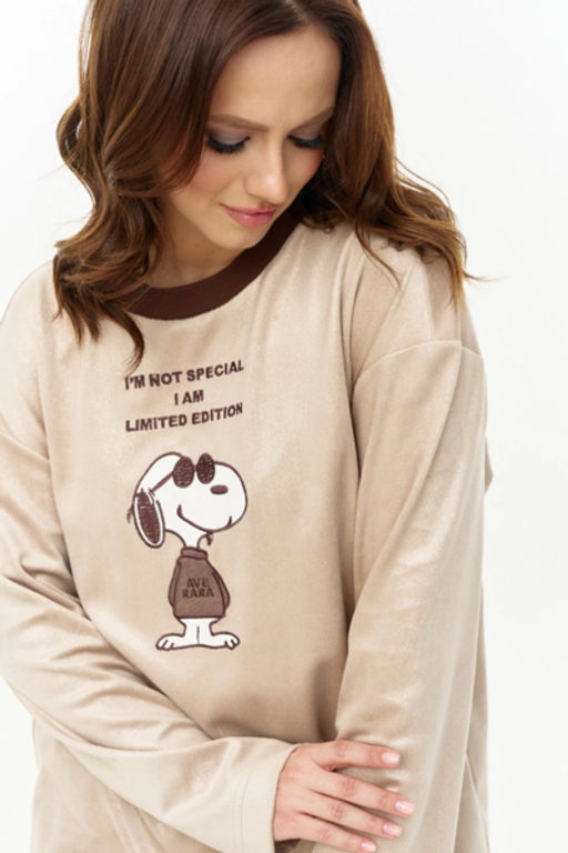 Свитшот из мягкого велюра с легким мерцанием, прямого силуэта, с круглой горловиной и декоративным довязом. Рукав длинный, линия плеча спущена. Перед с авторской вышивкой. ПЭ 65% Вискоза 30% Спандекс 4%