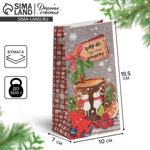 • Цена за 10 шт. Пакет подарочный без ручек новогодний «Кому‒то ну очень хорошему», 10×19.5×7 см