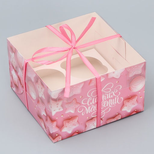 Цена за 5 шт. Коробка для капкейка, кондитерская упаковка, 4 ячейки «Сладкие моменты», 16 х 16 х 10 см