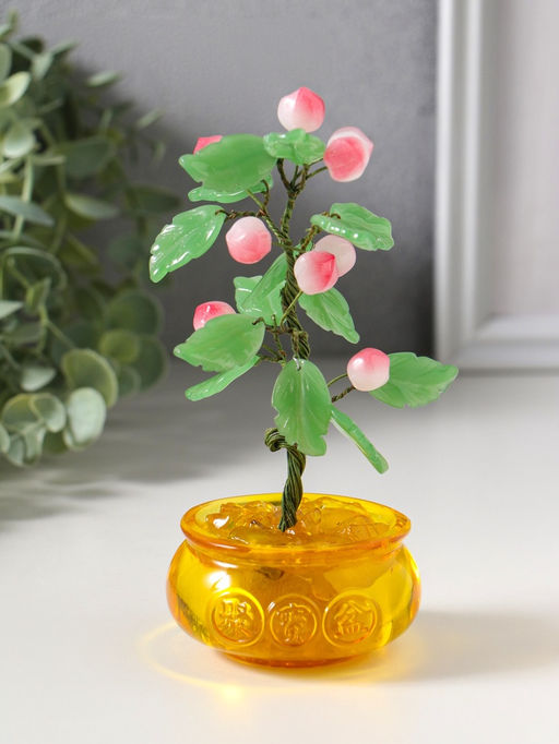 • Сувенир бонсай "Дерево с персиками в чаше богатства" 9 персиков 14 листьев 7,5х9,5х16 см