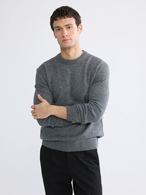 • Bisiklet Yaka Y?n Kar???ml? Erkek Triko Kazak