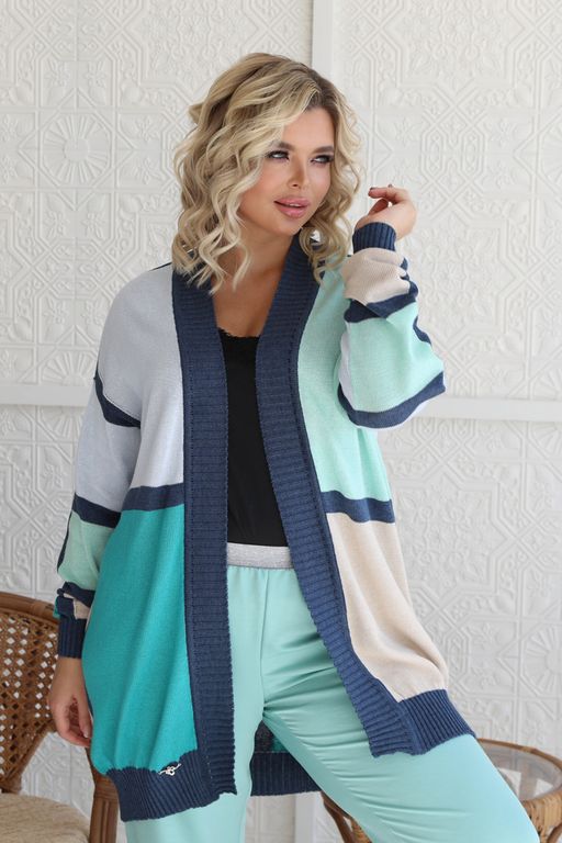 Изумительный кардиган полуприлегающего силуэта мятного цвета. Кардиган выполнен в технике ручного вязания из хлопковых нитей. Изделие со спущенной проймой и втачными рукавами. Планка переда и манжеты по низу изделия и рукавов вывязаны резинкой. Аксессуары в комплект не входят.