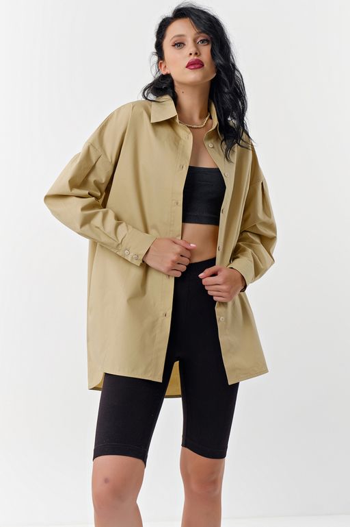 • Рубашка удлиненная хлопковая оверсайз с длинным рукавом бежевая
