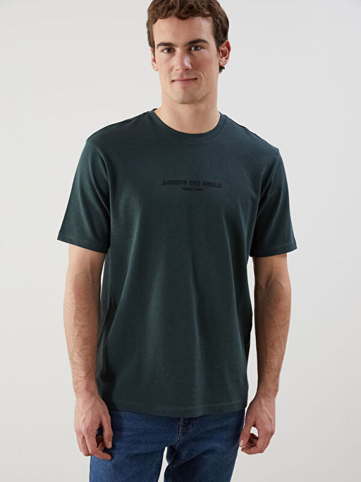 Bisiklet Yaka Bask?l? Erkek Ti??rt