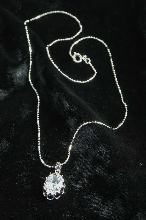 Великолепный подвес, выполненная из металла цвета серебра. Кулон украшен крупным цирконом прозрачного цвета.